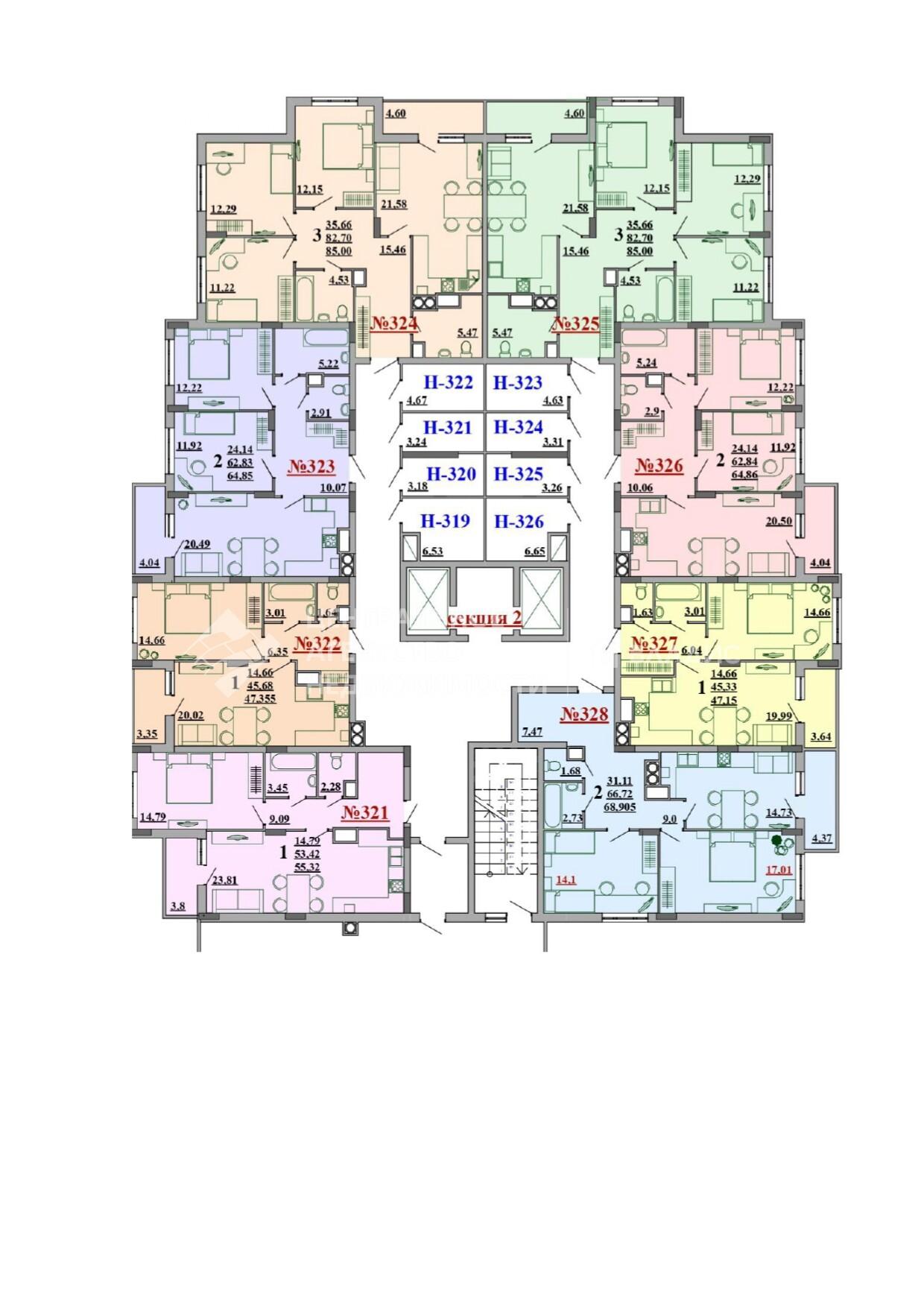 2-комнатная квартира 62.7 м² на 17 этаже
