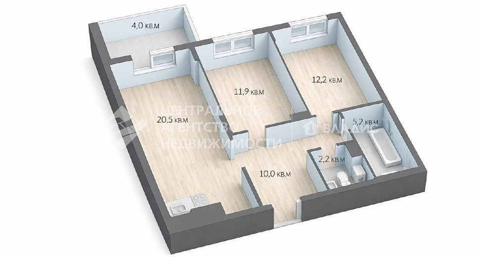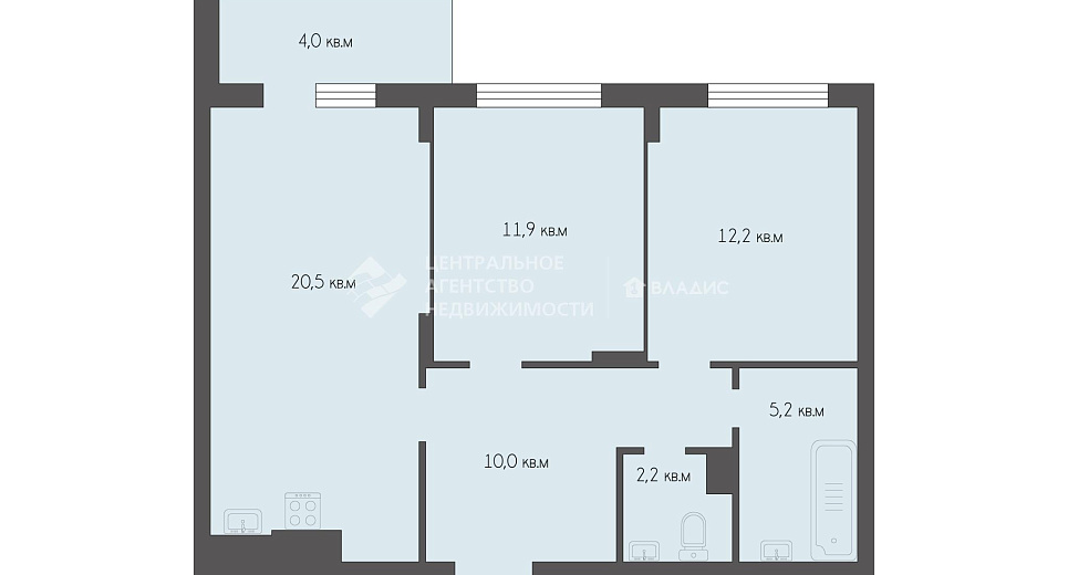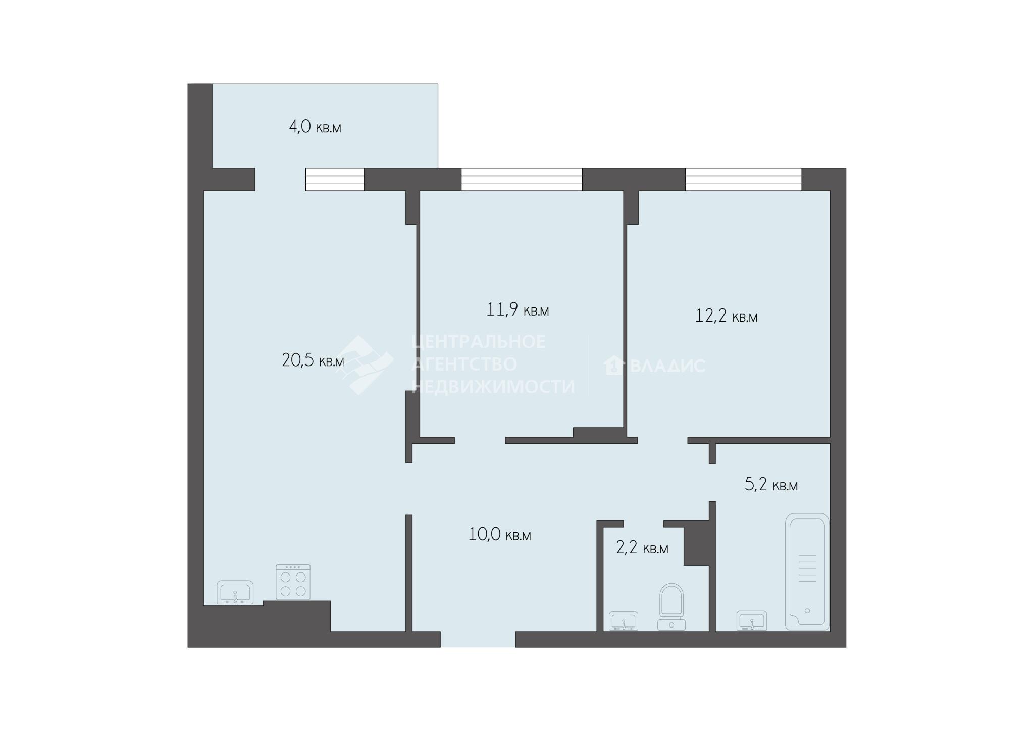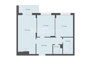 Площадь комнат: 11,9+12,2 кв. м.