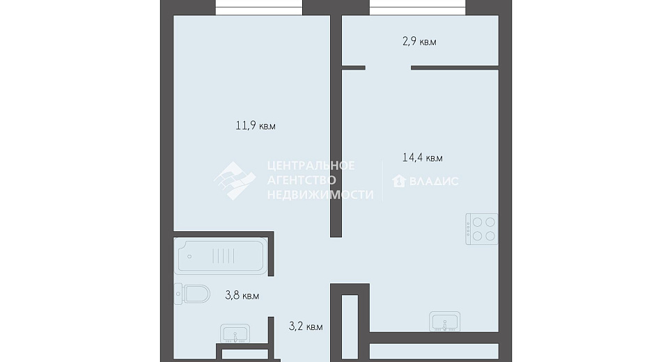 1-комнатная квартира 36.22 м² на 11 этаже