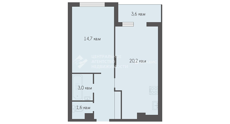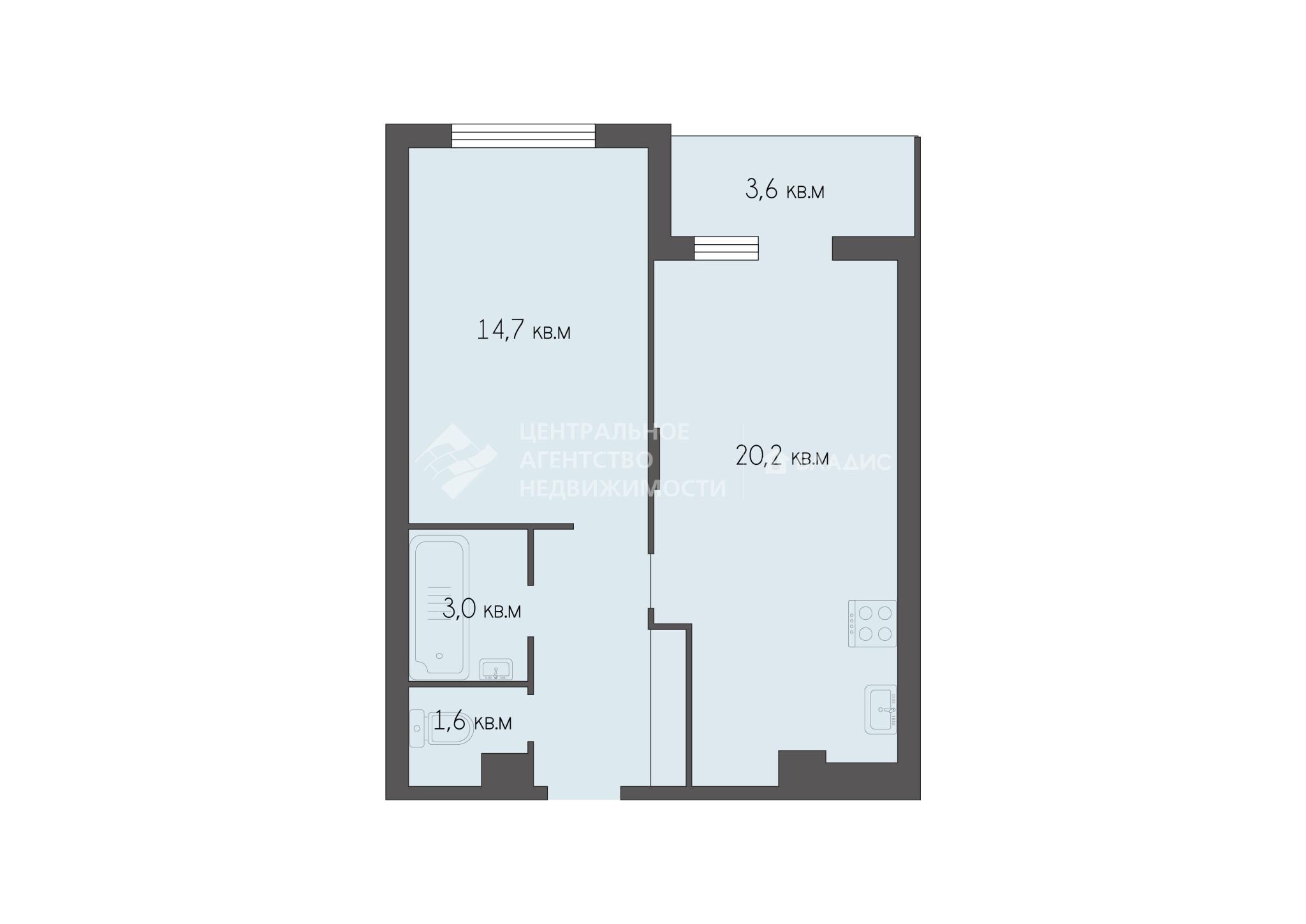 1-комнатная квартира 45.3 м² на 4 этаже