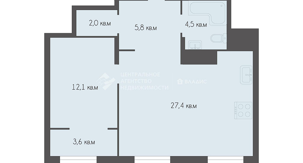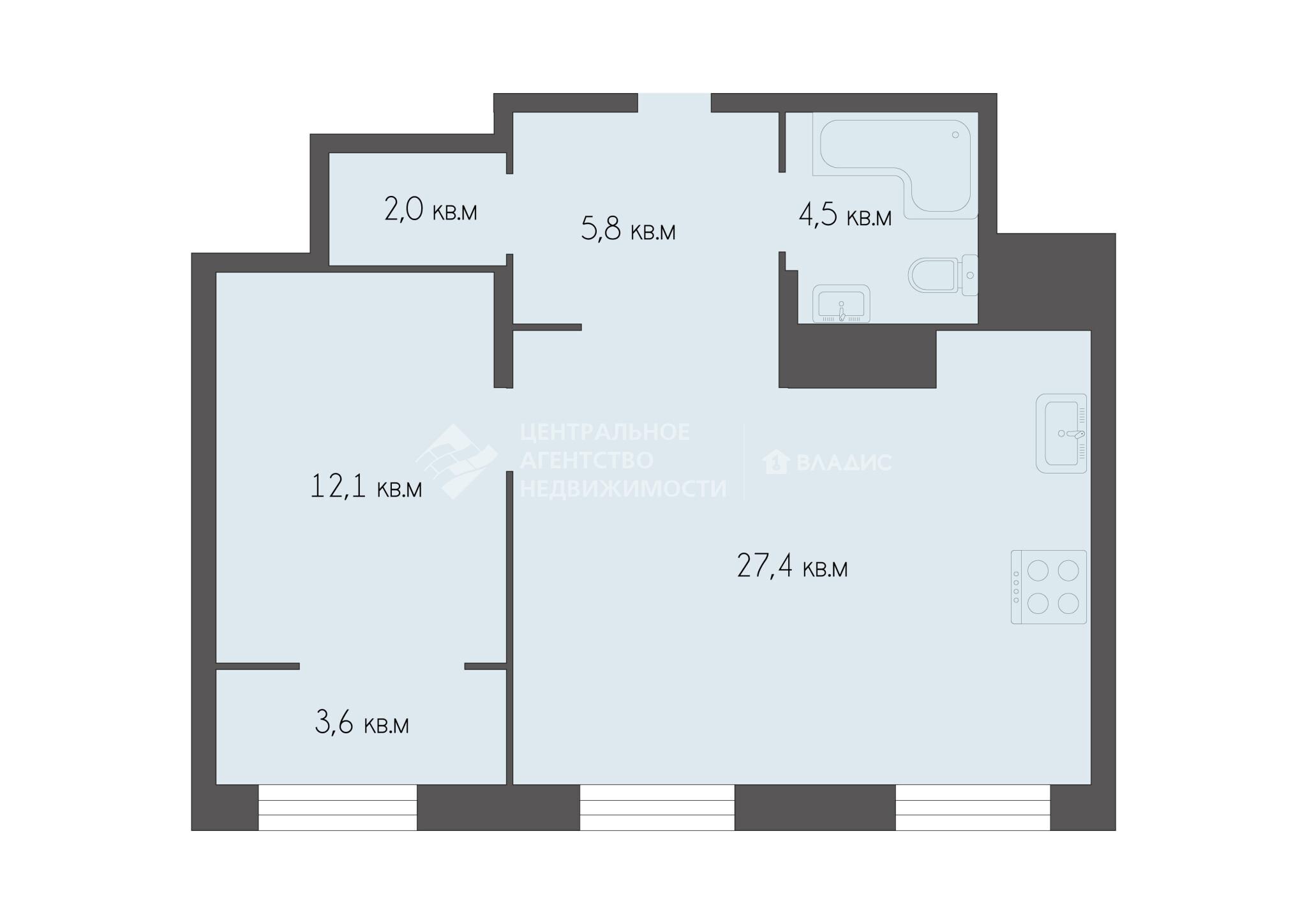 1-комнатная квартира 55.48 м² на 7 этаже