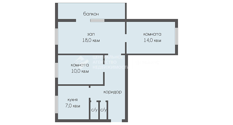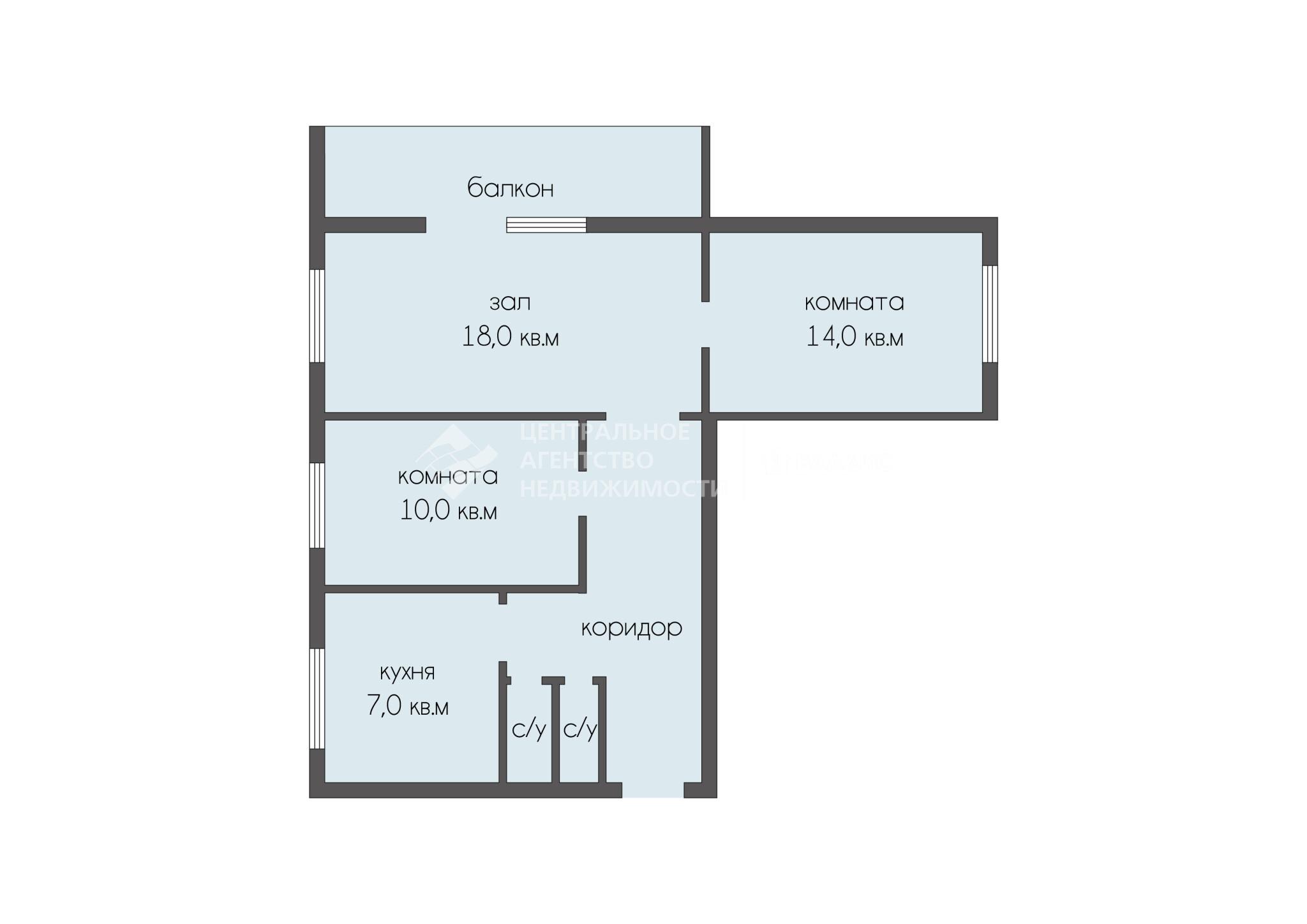 3-комнатная квартира 59.4 м² на 7 этаже