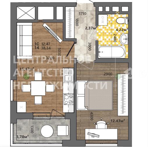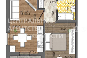 1-комнатная квартира 38.34 м² на 6 этаже