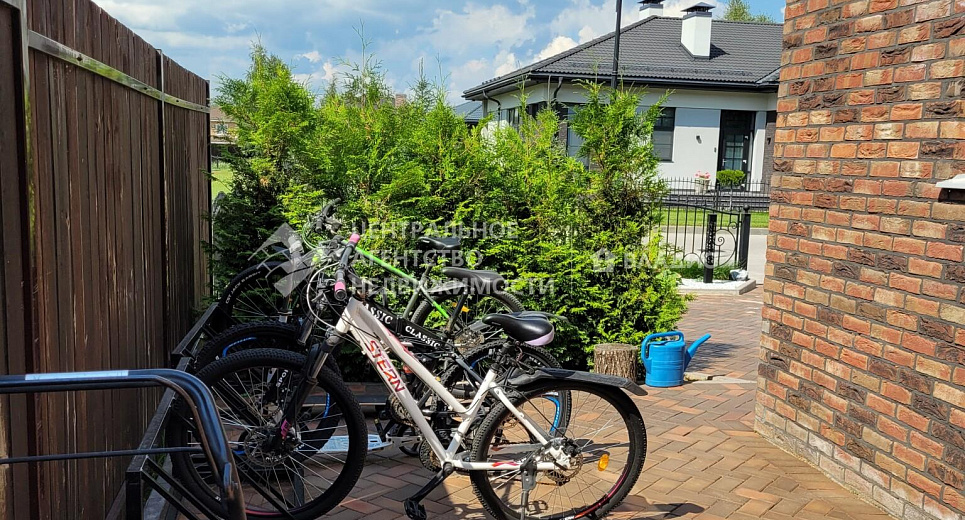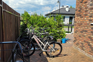Площадка для велосипедов рядом с гаражом.