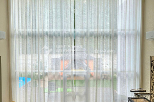 Панорамное остекление гостиной с выходом на "палубу" к бассейну, потолки 6 м окно 6х6 м: тёплый алюминий с мультифункциональными стёклами (также как и во всем доме).