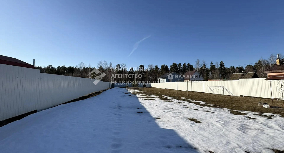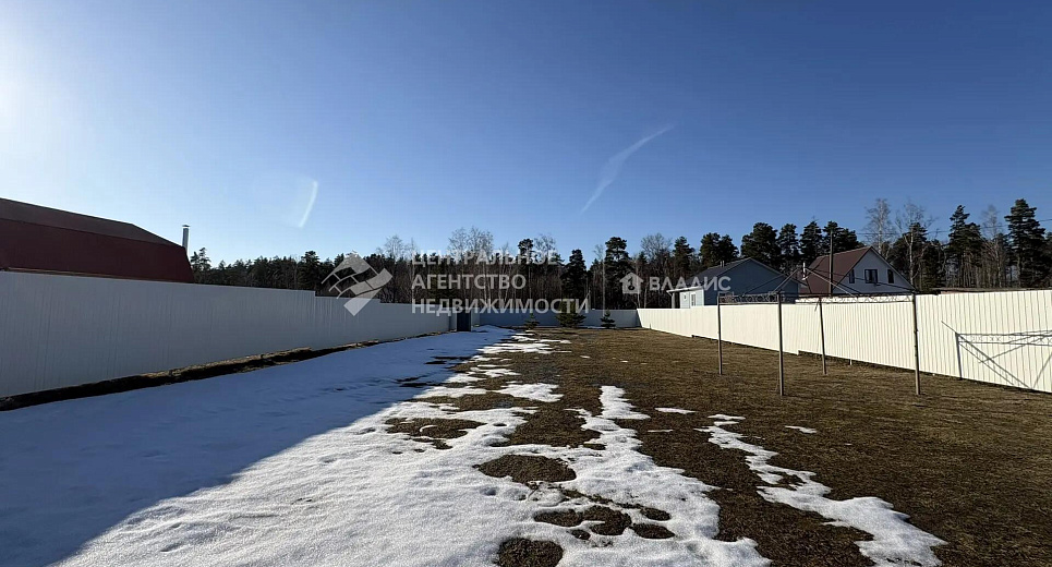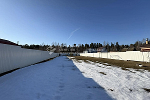 Участок: 19 соток, прямоугольной формы, полностью огорожен забором. Фронтальная часть забора выполнен на ленточном фундаменте, столбы из кирпичной кладки. Подъезд к участку по асфальтированной дороге.