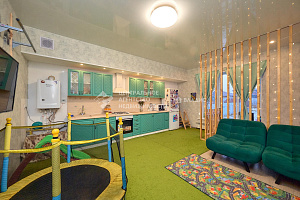 - 1 этаж: 2 изолированные спальни (14 и 20 кв. м), большая гостиная, кухня 26 кв. м, совмещённый санузел.