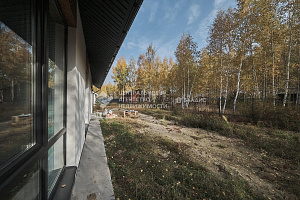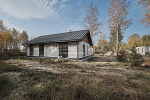 - стeны из гaзocиликатнoгo блокa (300 мм, D500) с утeплeниeм 100 мм и наружной отделкой «мокрый фасад», декоративная штукатурка Сеrеsit. Декоративные элементами из металла Grаndlinе под имитацию бруса.