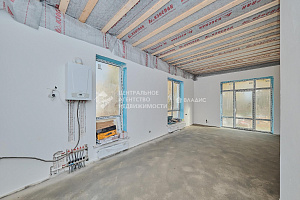 На участке 7 соток, подведены все необходимые коммуникации: электричество, водоснабжение, газ и канализация. Дом подходит для круглогодичного проживания благодаря индивидуальному котлу отопления.
