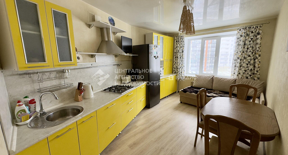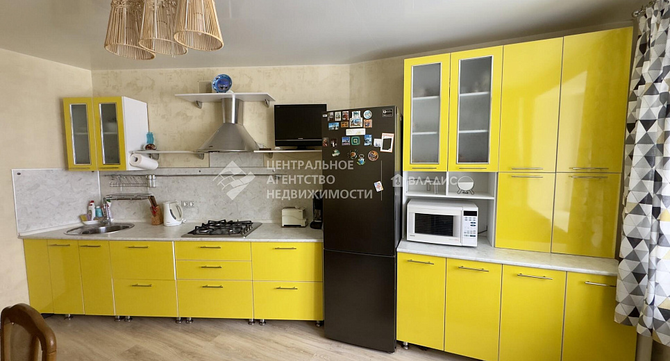 Просторная кухня-гостиная оборудована кухонным гарнитуром, варочной газовой панелью, духовым шкафом, холодильником, диваном.